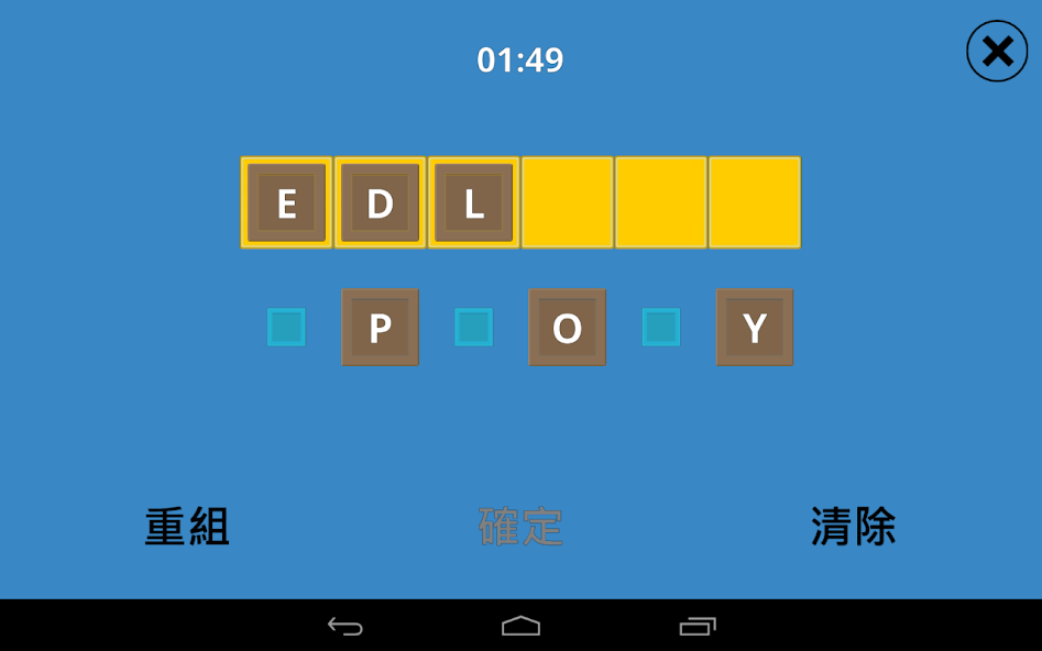 Расположите сцепленные буквы, чтобы сформировать слово, прежде чем время истекает.